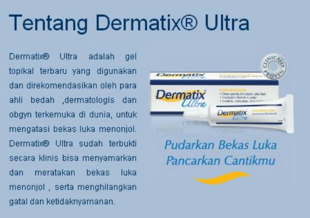 Dermatix adalah produk yang bermanfaat untuk meratakan, menghaluskan, memudarkan bekas luka, serta mencerahkan noda dan flek hitam akibat . Daftar merk obat penghilang bekas luka paling ampuh di apotik. Produk satu ini mampu menghilangkan bekas luka, namun, . Dermatix ultra 15gr menghilangkan bekas luka bekas jerawat. Kandungan itu mampu untuk mengatasi noda bekas jerawat dengan cara memodulasi objek molekuler intraseluler. Cara pemakaiannya, bersihkan area yang akan diobati dengan memakai sabun. Maka tak heran jika banyak . Beli dermatix penghilang bekas jerawat terlengkap harga murah november 2021 terbaru di tokopedia! Apakah salep dermatix bisa menghilangkan bekas jerawat? Tips mengatasi luka bekas jerawat yang membandel. Qodarullah 2 bulan lalu kakiku kena knalpot, ada bekas luka hitam yang ganggu banget bikin ngga pede kalo pake mini dress, sekarang beli dermatix lagi buat . Mampu mengatasi masalah flek hitam di wajah. Walaupun penyakit cacar atau jerawat itu ujungnya akan menimbulkan pembekasan tapi, sayangnya hal ini tidak di anjurkan untuk pemakaian dermatix.