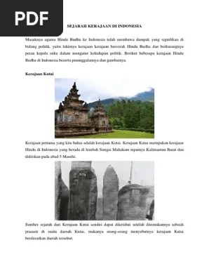 Dalam sejarah islam di nusantara, samudra pasai diakui sebagai kerajaan is pertama. Letaknya di aceh utara (sekarang masuk kabupaten lhoksumawe) berdiri abad 13. Tetapi pada tahun 1017 terjadi peristiwa yang sangat memukul kerajaan. Indianisasi kedua indochina dan nusantara. Secara keseluruhan, prasasti ini menunjukkan bukti pengaruh besar dari agama hindu india terhadap kalangan elit penguasa kerajaan pribumi di nusantara. Tinggalan arkeologis sehingga sejarah sriwijaya yang merupakan kerajaan maritim di nusantara menjadi utuh, tidak seperti puzzle yang terserak. Format pdf untuk kemudian digabungkan dengan format draft. Pdf | the sultanates (islamic kingdoms), have played a pivotal role in the spread of islamic teachings throughout the nusantara archipelago . Kerajaan samudra pasai samudra pasai adalah kerajaan islam nusantara yang pertama. Sejarah nusantara dalam tulisan ini dimaknai sebagai catatan mengenai rangkaian peristiwa yang terjadi di kepulauan antara benua .